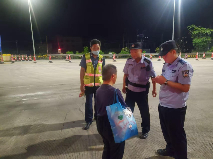 10月6日4时35分,广韶高速汤塘站发现一名老人欲步行进入高速,当值工作人员范继烦立即上前劝阻,并将老人引导至安全区域。由于老人言语含糊,吐词不清,无法准确说出自己的姓名、住址或家人联系方式,范继烦随即联系当地公安机关求助。等待期间,范继烦始终守在老人身边,安抚老人情绪。最终,民警通过人脸识别系统查询到老人的身份信息为汤塘镇贵盖村村民,并将老人安全送回家中。